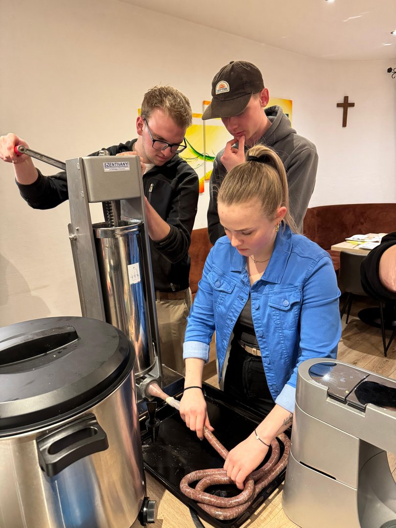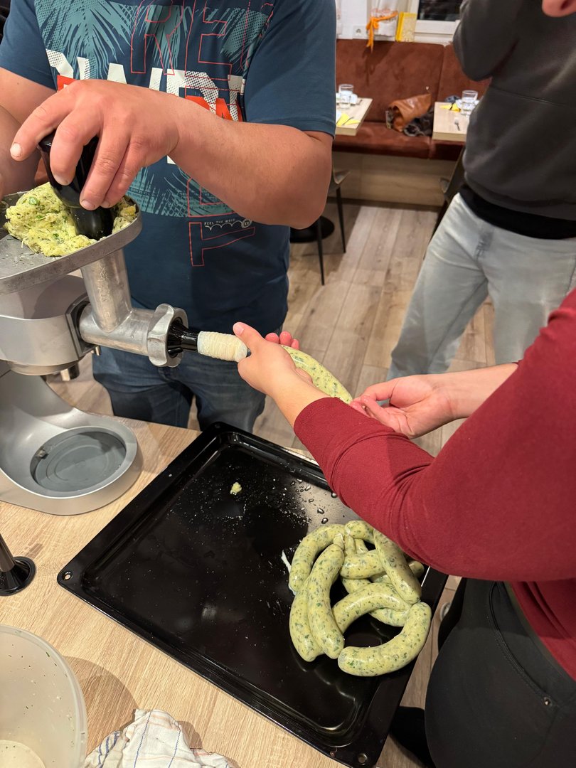 Gemeinsam wurden hausgemachte Bratwürstl, rustikale Leberpastete und würziges Rillettes im Glas zubereitet und natürlich verkostet. Die Teilnehmer konnten Schritt für Schritt lernen, wir man Brät herstellt, Würste richtig füllt und mit verschiedenen Gewürzen und Fleischarten kreativ variiert.