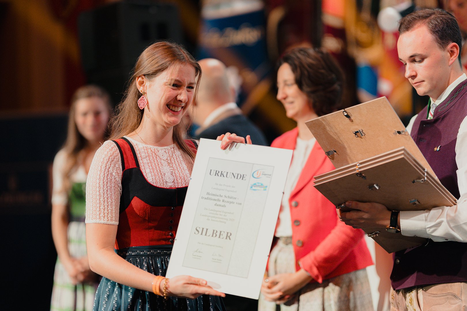 Die Projekte “Schleedorf in vier Jahreszeiten” von unserer ehemaligen Leitung Stv. Emely Kindermann und “Ollerhond Mitanond” von unserer Pressereferentin Lisa Marie Lausenhammer erreichten Gold. Aber nicht nur das: Lisa Marie Lausenhammer durfte sich über die Auszeichnung “Bestes Landesprojekt 2025” freuen.